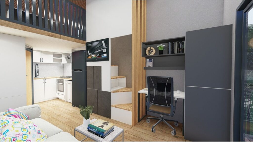Olmoti 75, kompakt ölçülerde maksimum konfor arayanlar için tasarlanmış, fonksiyonelliği ön planda tutan bir 1+1 tiny house modelidir. Küçük metrekarede doğru planlama sayesinde hem yaşam hem de kullanım alanlarını dengeli bir şekilde sunar.